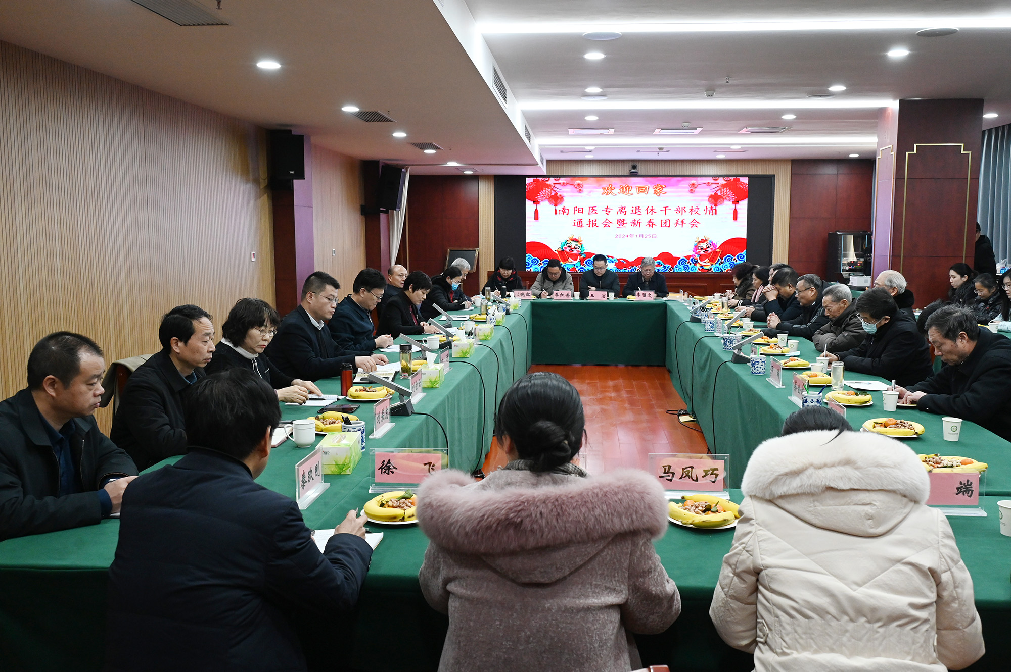 本网讯(文/离退处 艾静)1月25日上午,我校在仲景东区仲景文化中心召开离退休干部校情通报会暨新春团拜会。校领导班子全体成员、离退休老领导、老专家、老同志代表出席会议,相关处室负责同志参加。会议由党委副书记刘涛主持。