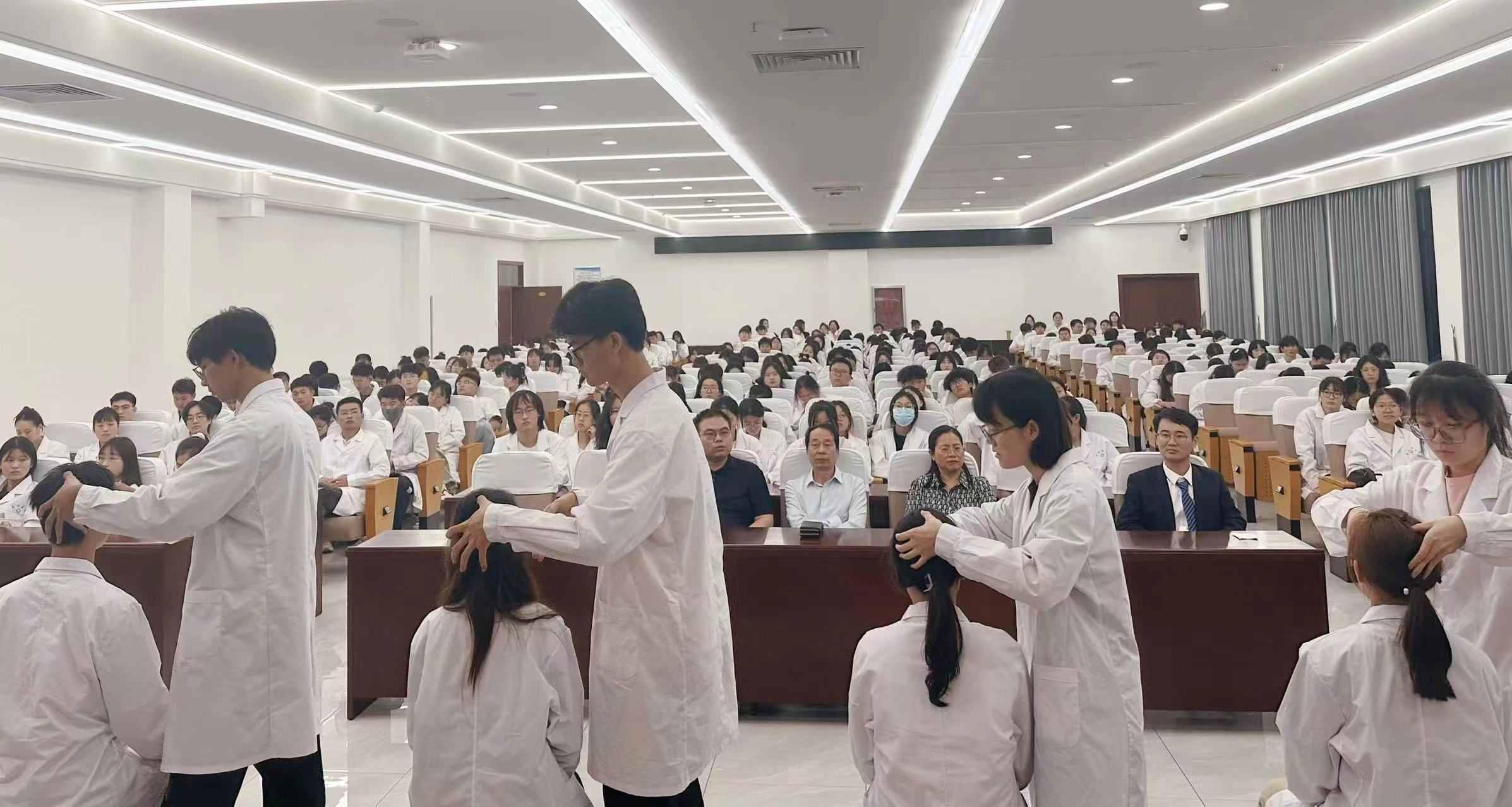 本网讯(文/中医系 王翘楚)5月25日,国家级非遗项目张氏经络收放疗法第二、三期传承班结业典礼暨技艺展演活动在仲景文化中心719会议室举行。副校长刘荣志,康复系、临床系、中医系、经络收放疗法传承人郭仁昭老师及300余名学员参加典礼。典礼由中医系主任张明丽主持。