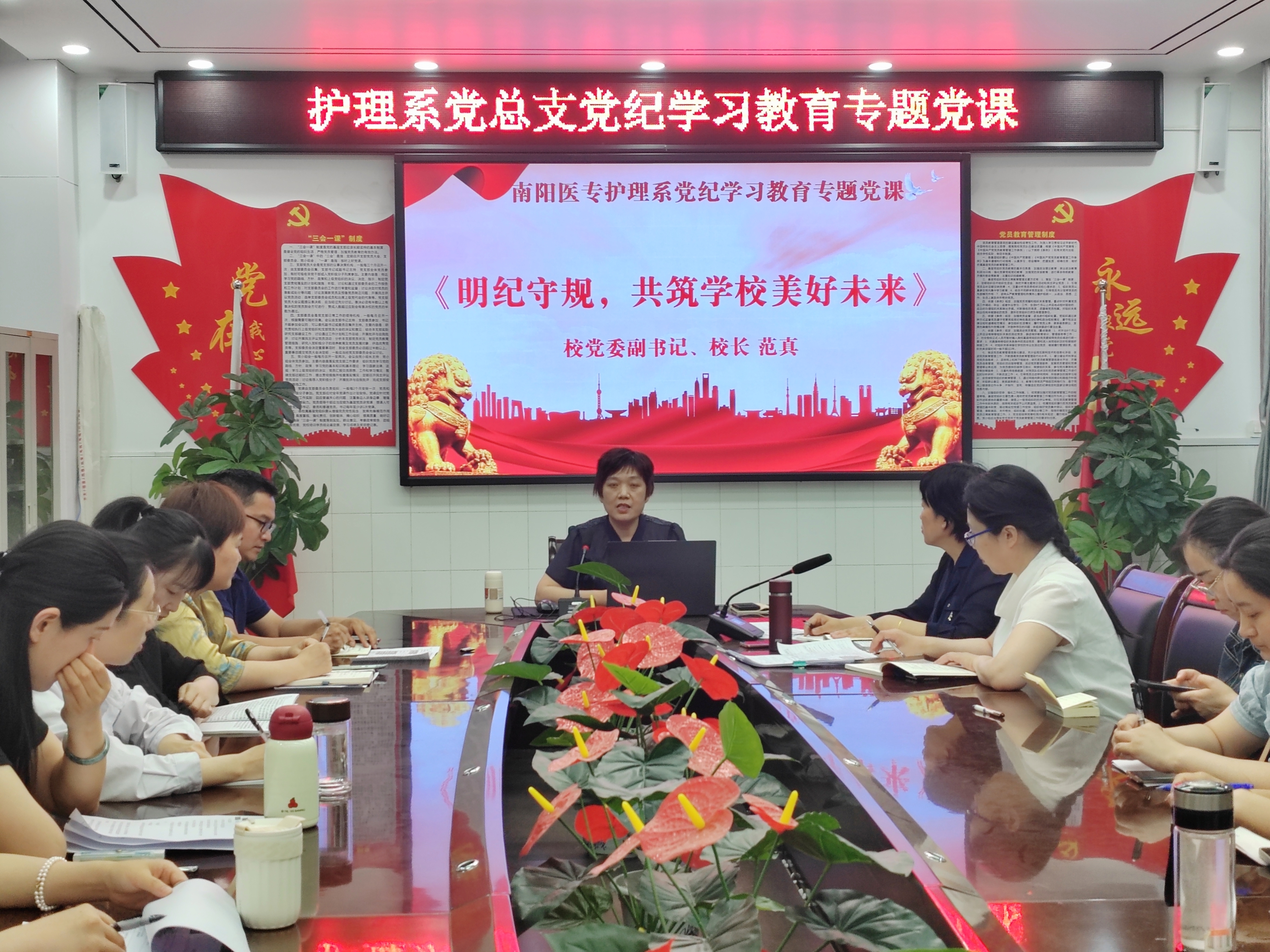 本网讯(文/护理系 何红丽)为进一步推动党纪学习教育走深走实,6月4日下午,校党委副书记、校长范真深入护理系,为全体教职工讲授题为《明纪守规,共筑学校美好未来》的专题党课。