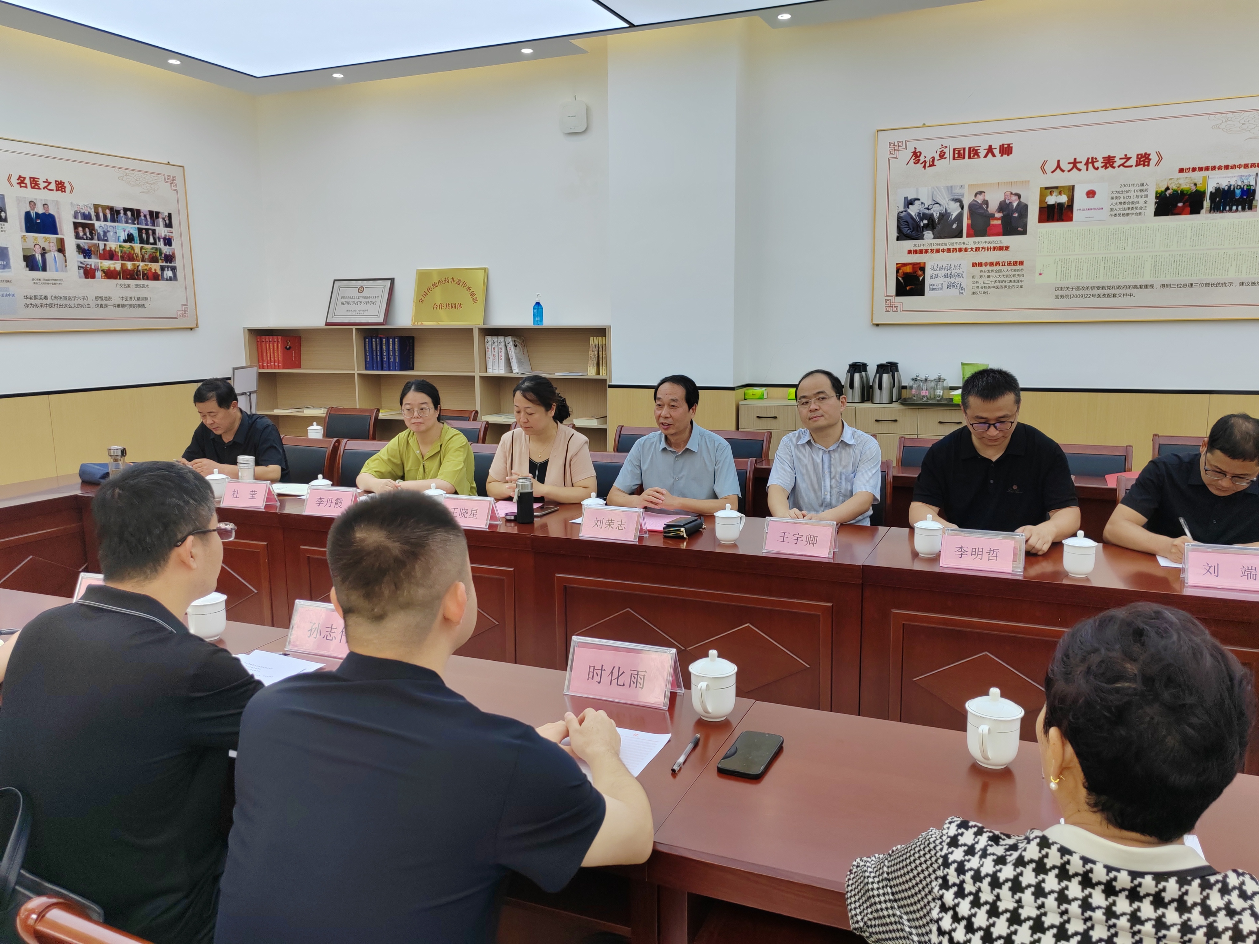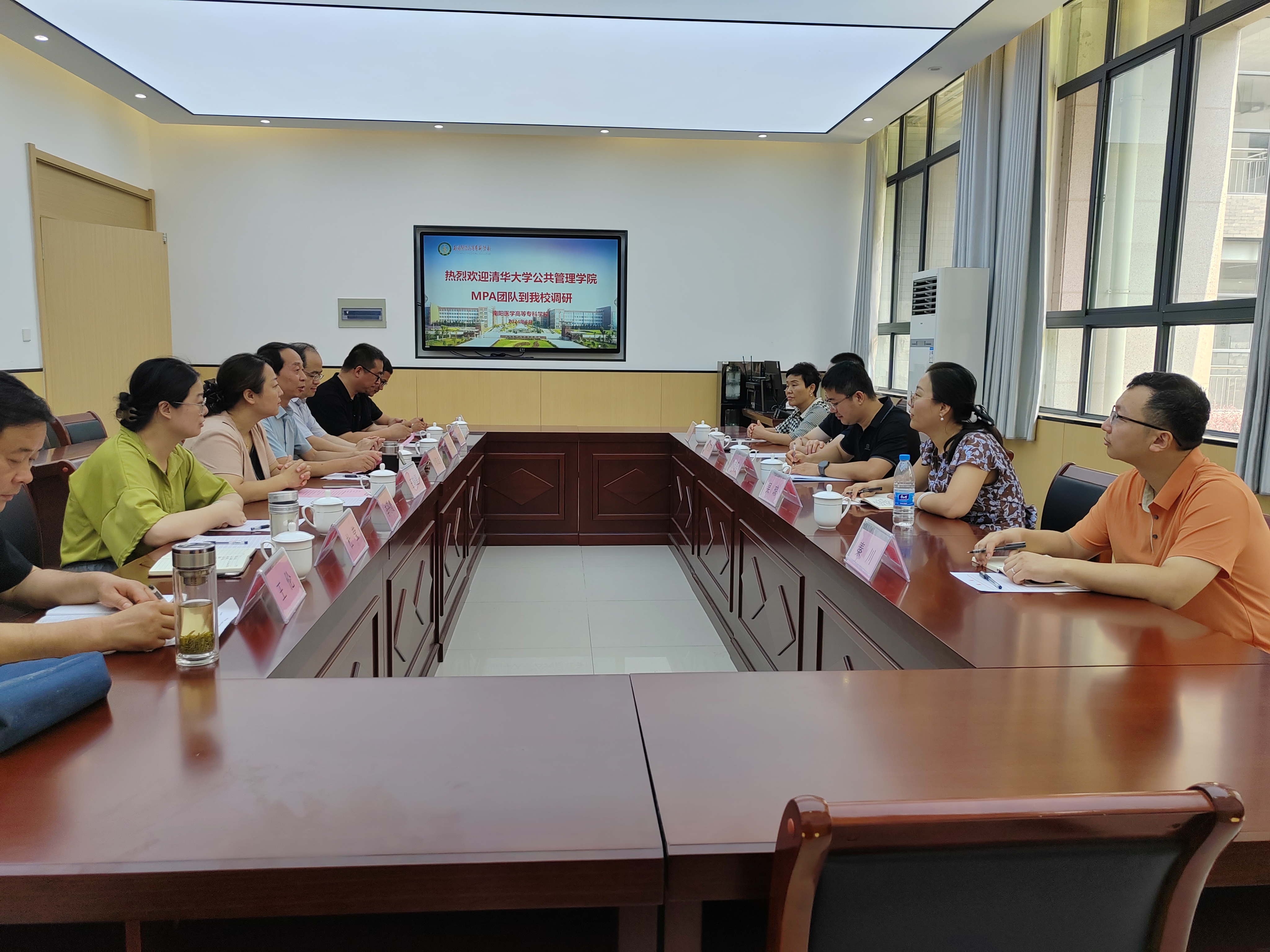 本网讯(文/针灸骨伤系 马驰)8月4日,清华大学公共管理学院MPA团队到我校开展“河南省南阳市艾草产业高质量发展”调研活动,校党委委员、副校长刘荣志,市中医药发展服务中心主任王晓星,南阳理工学院张仲景国医国药学院、我校科研中心、继续教育学院、针灸骨伤系等相关部门负责人参加调研活动。