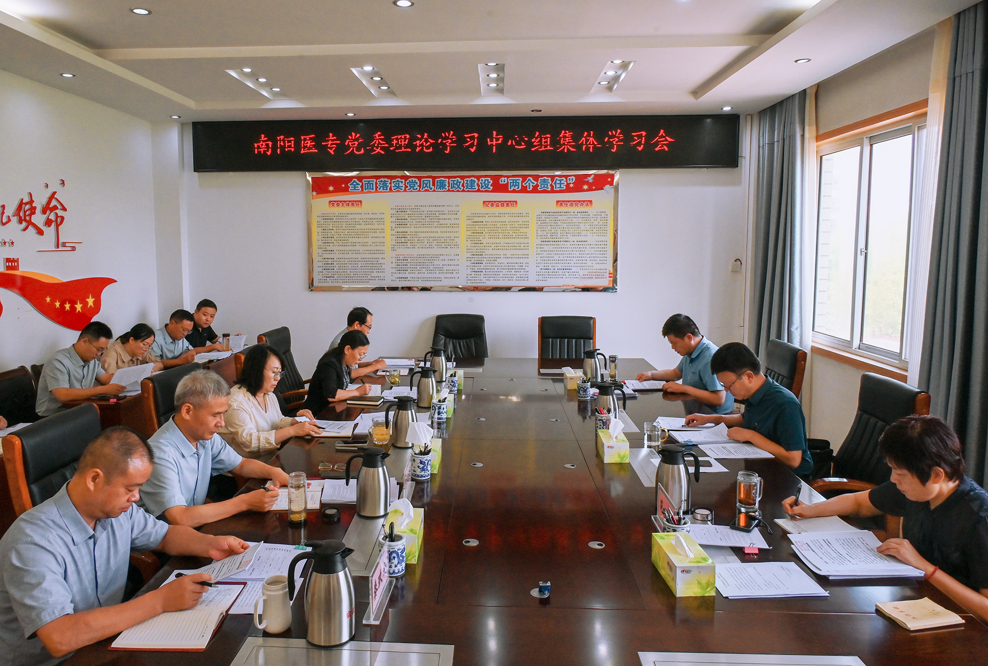 柳明伟就学习宣传贯彻党的二十届三中全会精神,提出三点要求:一是学深悟透,迅速掀起学习宣传热潮。全校上下要把学习贯彻全会精神作为当前和今后一个时期的重大政治任务,要坚持原原本本学、深入系统学、融会贯通学、联系实际学。领导干部要先学一步、深学一层,充分发挥示范表率作用,校领导9月底前带头到部门、系部院开展宣讲;要推动党的二十届三中全会精神进教材、进课堂、进头脑;要深化理论研究阐释,努力推出一批高质量的研究成果;要组建宣讲团,深入基层组织开展好对象化、分众化、互动化宣讲,推动党的二十届三中全会精神在南阳医专落地生根。二是融会贯通,扎实推动学校改革发展。要把深入学习领会党的二十届三中全会精神与学习领会习近平总书记关于全面深化改革的一系列新思想、新观点、新论断结合起来,与学校“1233”工作布局和“五大工程”建设任务结合起来。要准确把握科教兴国战略、人才强国战略、创新驱动发展战略对职业教育的新要求,明确学校发展定位,深化改革创新,不断增强学校的综合实力和核心竞争力,以高度的责任感和使命感,扎实推进学校各项改革工作。三是知行合一,不断提升学校治理水平。全校上下要齐心协力抓好《决定》的贯彻落实,要在抓落实中深化学习、破解难题、推动工作,要紧紧围绕国家职业教育战略部署,围绕立德树人根本任务,以学校迎接“双高工程”建设验收为契机,补短板、创特色、求突破,精心谋划、统筹部署各项改革举措,以钉钉子精神把全会宏伟蓝图变成学校事业施工图,推动学校各项改革任务落实落地,切实提升学校治理水平,以优异成绩向新中国75周年华诞献礼。(编审/张博 摄影/胡磊)