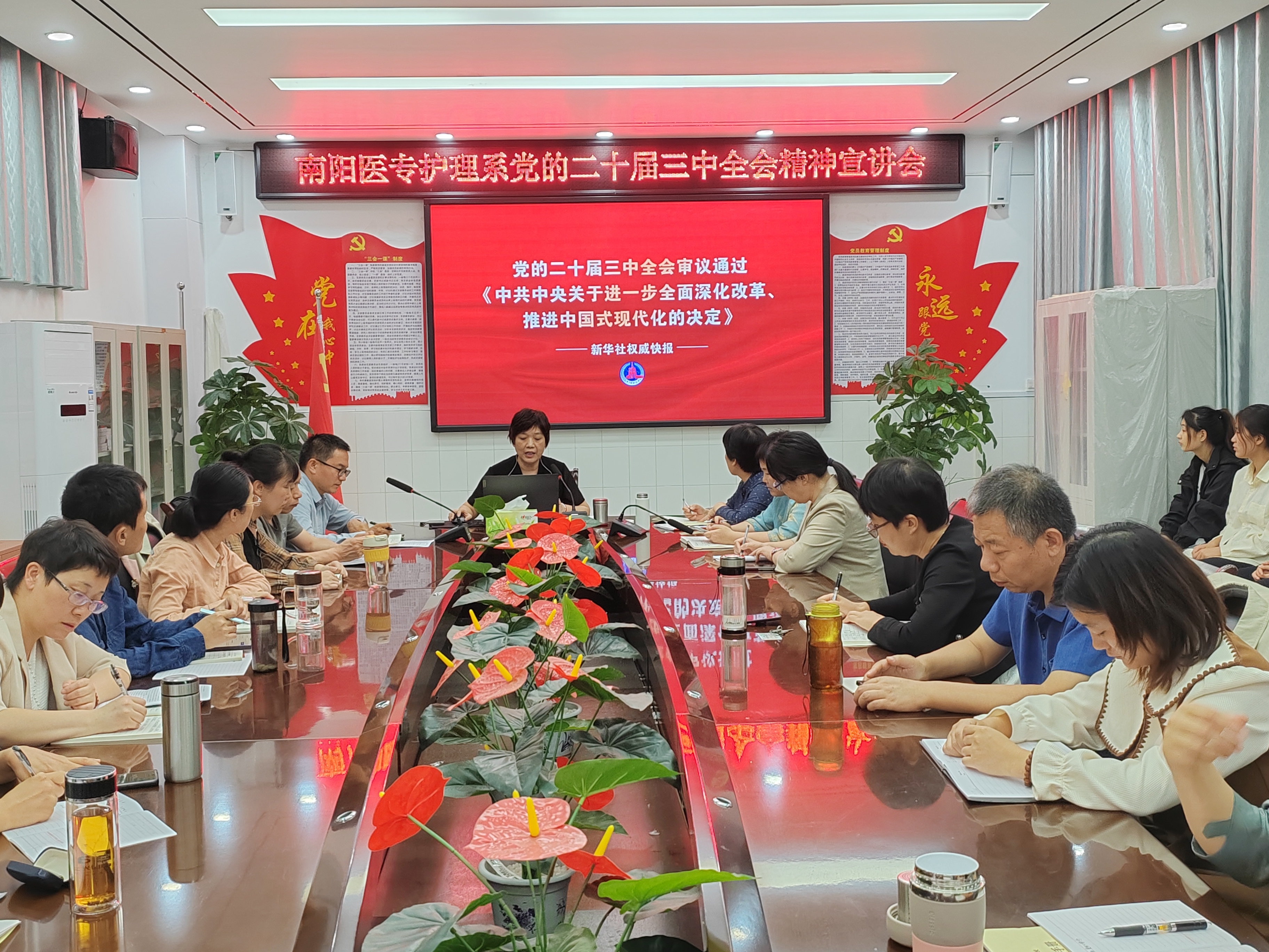 范真首先带领大家学习了《中共中央关于进一步全面深化改革、推进中国式现代化的决定》。她指出,学习宣传贯彻党的二十届三中全会精神,是当前和今后一个时期的重大政治任务。要提高政治站位,强化使命担当,认真学习领会全会精神,引导党员干部群众将思想和行动统一到党中央决策部署上来。