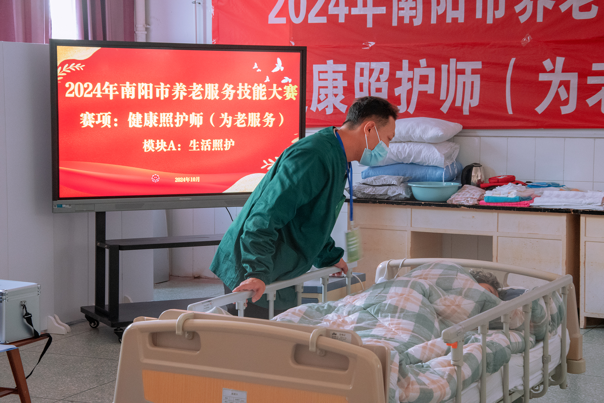 本次大赛分两个阶段,第一阶段为培训阶段,在10月10日至10月13日进行三天的赛前线上理论培训、10月14日进行赛前线下集中实操培训;第二阶段在10月15日-10月16日进行竞赛,竞赛共有养老护理员、健康照护师、家政服务员、营养配餐员4个赛项,每个赛项又分为理论知识考核和技能考核两部分。各位选手通过模拟真实场景,展示精湛技艺。经过两天激烈角逐,最终一批优秀选手和教练脱颖而出,分别荣获大赛一、二、三等奖和“优秀教练”奖,卧龙区、邓州市、内乡县等代表队荣获优秀组织奖。