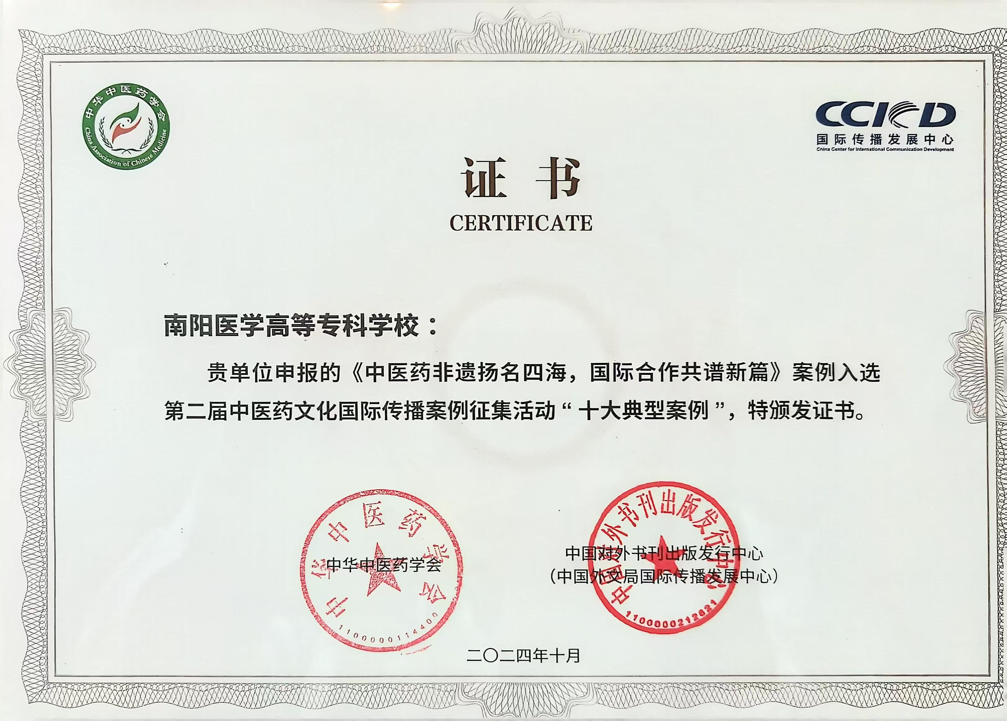近年来,学校高度重视中医药文化国际传播,立足仲景故里,大力实施职教出海工程,以张氏经络收放疗法、吴氏中医针法、李氏针灸等传统医药非遗技术为支撑,充分发挥中医药职业教育领域独特优势,倾力打造“仲景工坊”海外品牌,持续地推动了中外合作办学内涵式高质量发展。