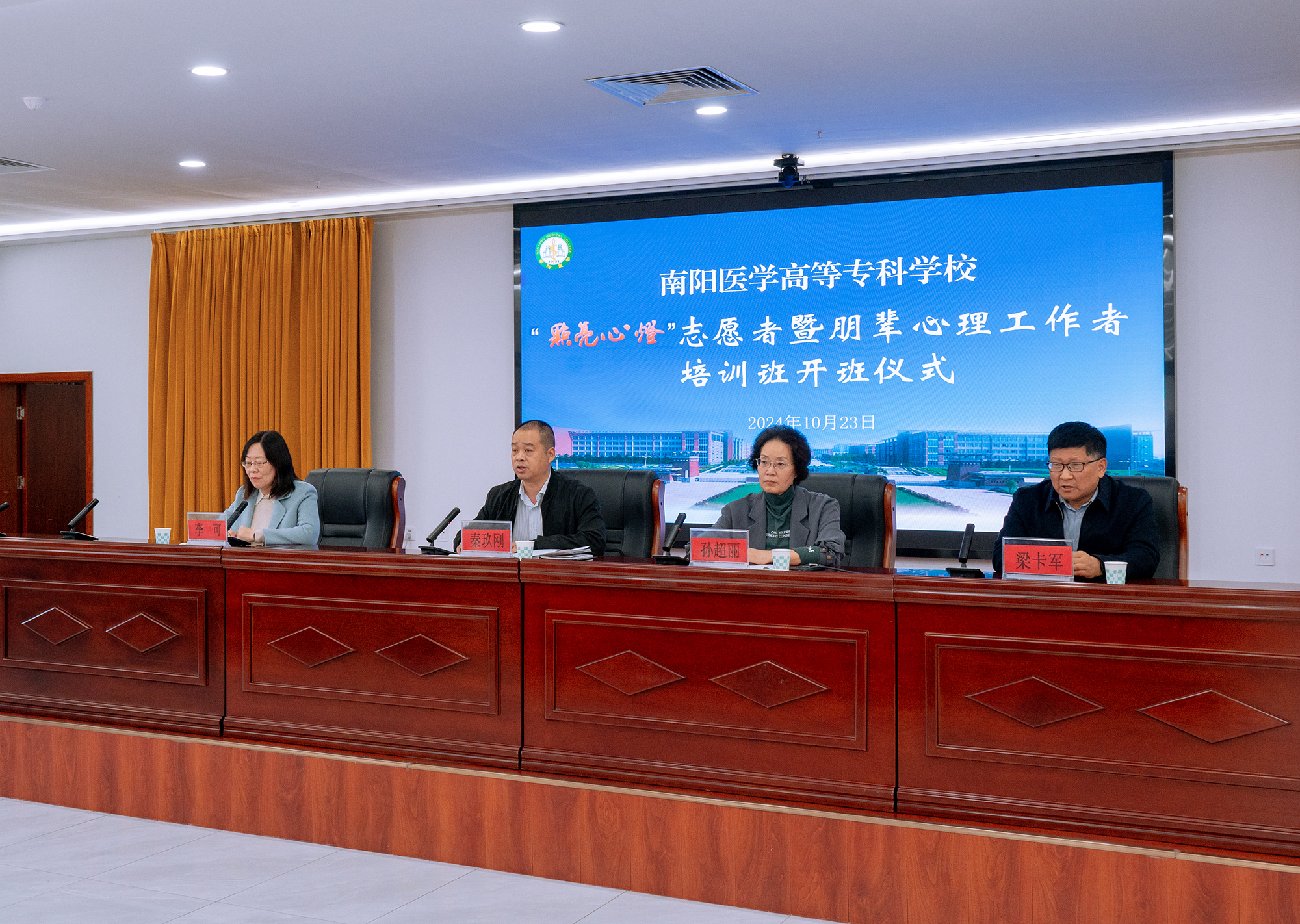 本网讯(文/心理健康关爱与教育中心 李孟辉)为充分发挥朋辈心理力量在心理健康教育四级预警防控工作体系中的积极作用,提升朋辈关怀引领的辐射效能,10月23日下午,心理健康关爱与教育中心组织的“点亮心灯”志愿者暨朋辈心理工作者培训班开班仪式在仲景东区文化中心举行。校党委委员、副校长秦玖刚出席开班仪式并讲话。各系(部、院)党总支副书记、学工办主任、心理专干以及近300名学生朋辈心理人员在现场参加开班仪式。1600余名通过线上观看了仪式。仪式由心理健康关爱与教育中心副主任李可主持。