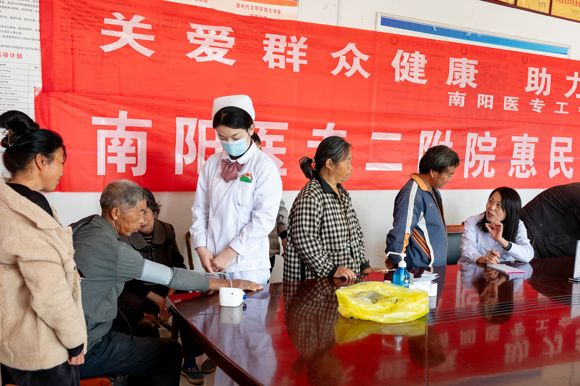 南阳医专工会主席杜晓平、组织部部长李红普、统战部部长张博,医专二附院党委书记牛嵩山、纪委书记郑佳带领医护专家团队为群众提供免费诊疗、健康咨询、慢性病科普、中药材辨识等项目,发放宣肺泄热、化痰止咳类药物百余盒,受到当地群众的热烈欢迎。
