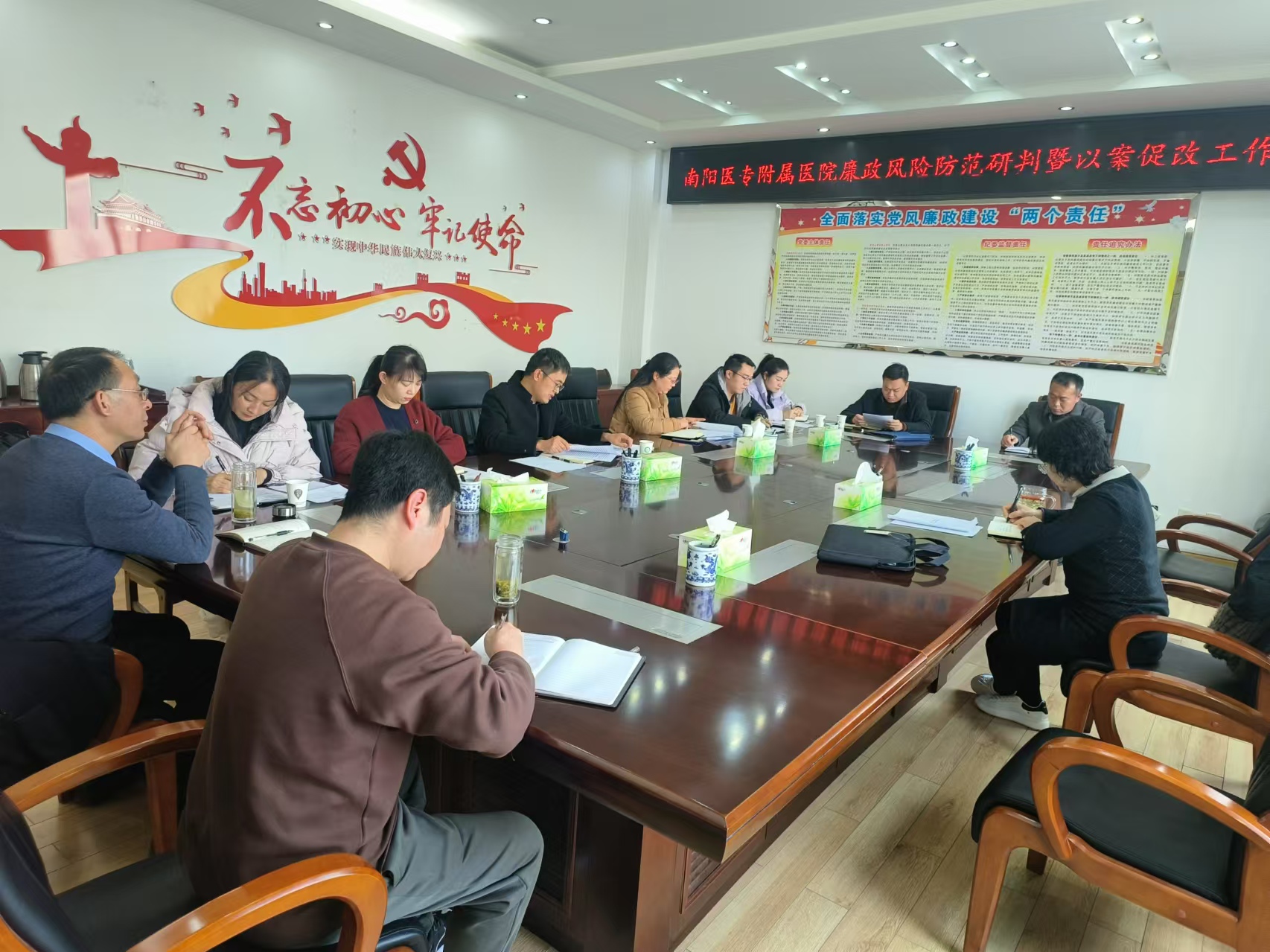 刘金云强调,要坚定不移把反腐败斗争向纵深推进,坚持办案引领,通过风腐同查同治,达到见微知著、系统施治、标本兼治的目的;要进一步加强纪检队伍建设,推动建章立制,明确附属医院纪检工作岗位设置、人选要求、职责任务、保障机制,选优配强纪检干部;要深入推进以案促改、以案促治,对近年来附属医院出现的违法犯罪问题进行归纳总结和系统剖析,深挖案发规律及共性问题,突出重点,分类施治。对附属医院管理体制机制薄弱环节,要查找短板,补强弱项,推动建章立制,强化规范管理,落实主体责任和监督责任,以强有力的监督和警示教育,促进医院医德医风明显改观,确保医专所有附属医院风清气正,健康发展。(编审 李峰松)