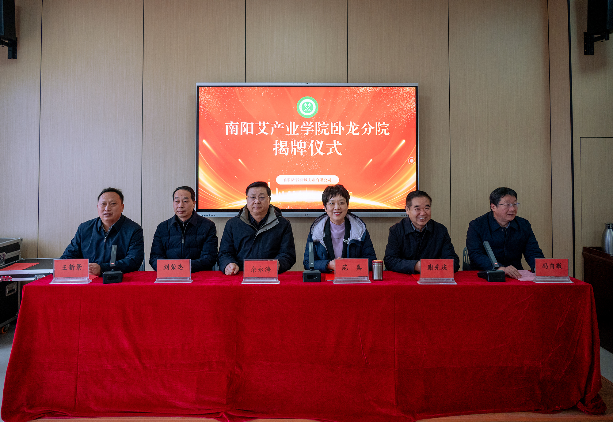 随后,范真校长和南阳产业投资集团党委书记、董事长余永海共同为“南阳艾产业学院卧龙分院”揭牌。
