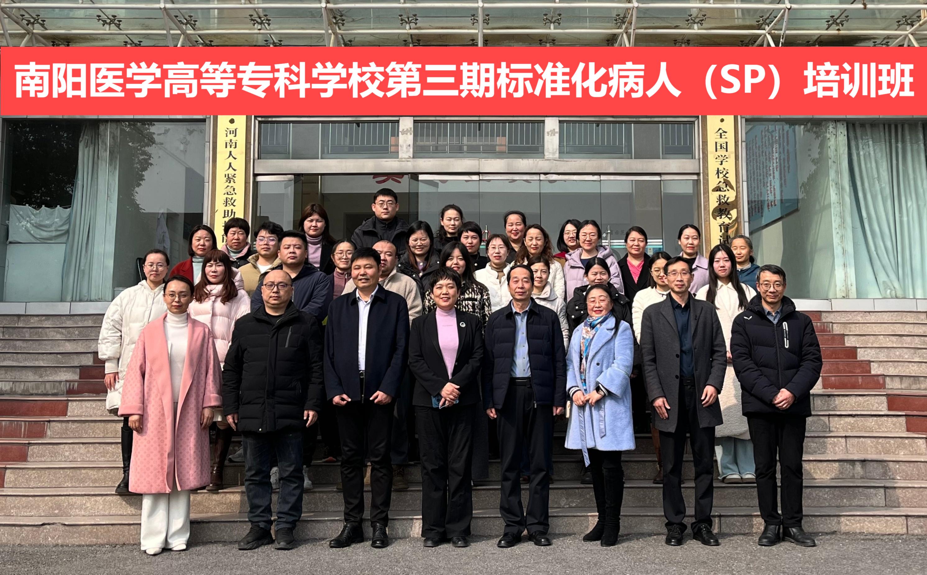 本网讯(文/临床医学系 黄金珠)2025年3月7日下午,南阳医专标准化病人(SP)第三期培训开班仪式在我校召开。校党委副书记、校长范真,校党委委员、副校长刘荣志出席,临床医学系党总支书记张辉、培训导师和30余名学员参加。开班仪式由临床医学系主任李玲主持。