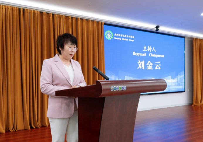 柳明伟祝贺学员们顺利结业,为学员颁发了结业证书。他在讲话中肯定了学员们的求知热情和乐学好学的精神,他指出,南阳医专以传承和弘扬仲景文化为己任,以国际化视野推动中医药文化传承创新发展,成功探索出一条独具特色的“职教出海”之路。本次培训根据学员需求,结合学校中医药优质教育资源,倾心打造了中医适宜技术系统培训课程。希望俄罗斯学员回国后能够成为在俄传播中医文化的使者和连接中俄交流的桥梁,祝愿中俄友谊长存。